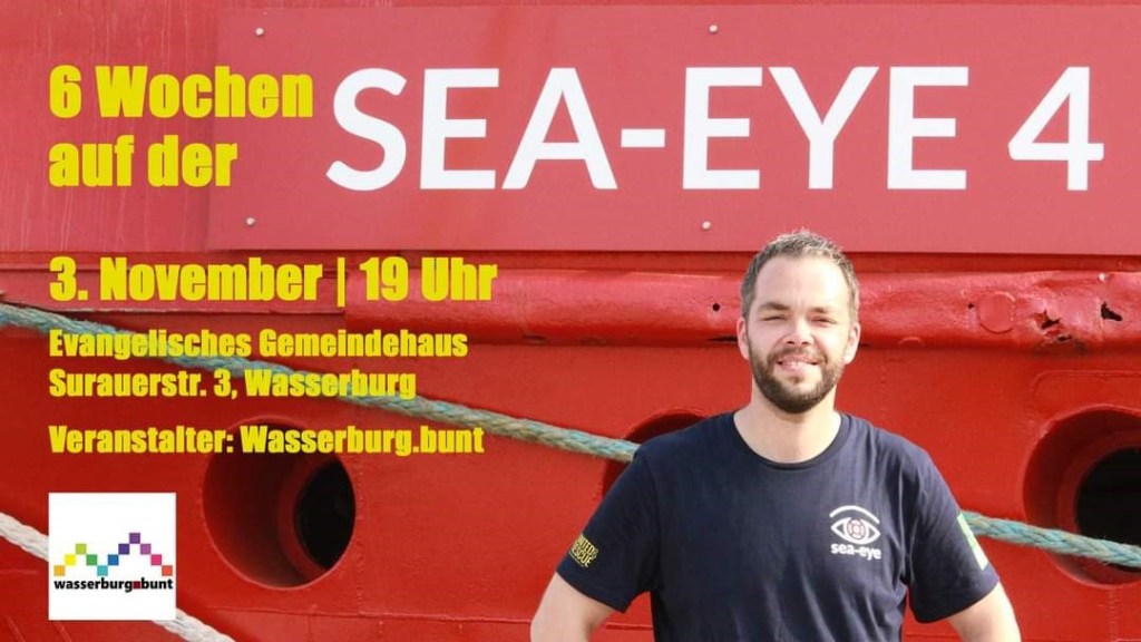 In unserer Veranstaltung „Sechs Wochen auf der Sea-Eye“ wird Andreas Krahl über seine Erfahrungen auf dem Seenot-Rettungsschiff „SeaEye4“ berichten und uns einen Einblick über Fluchtursachen im Mittelmeerraum geben sowie darüber, was wir seiner Meinung nach auch hier vor Ort beitragen können.