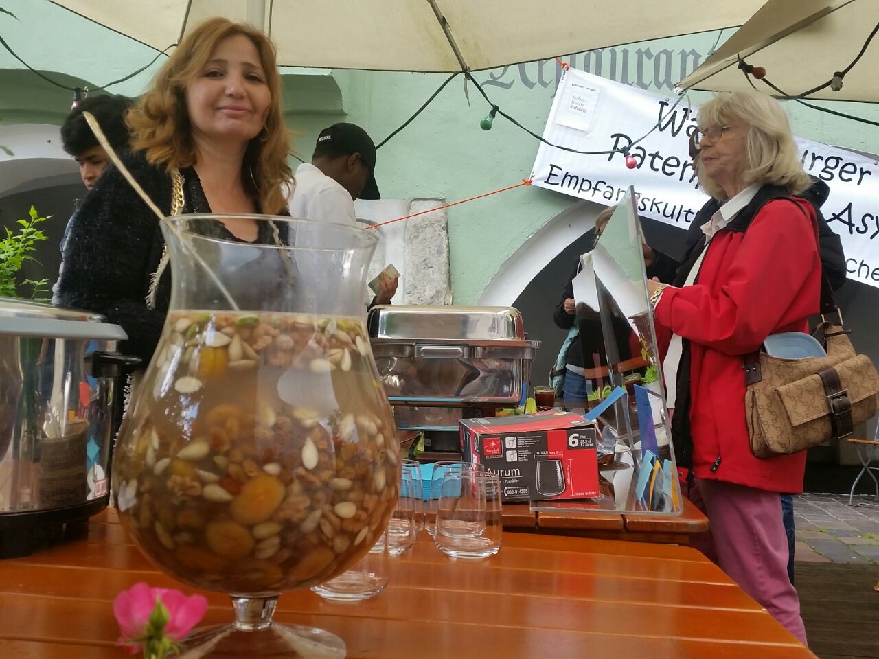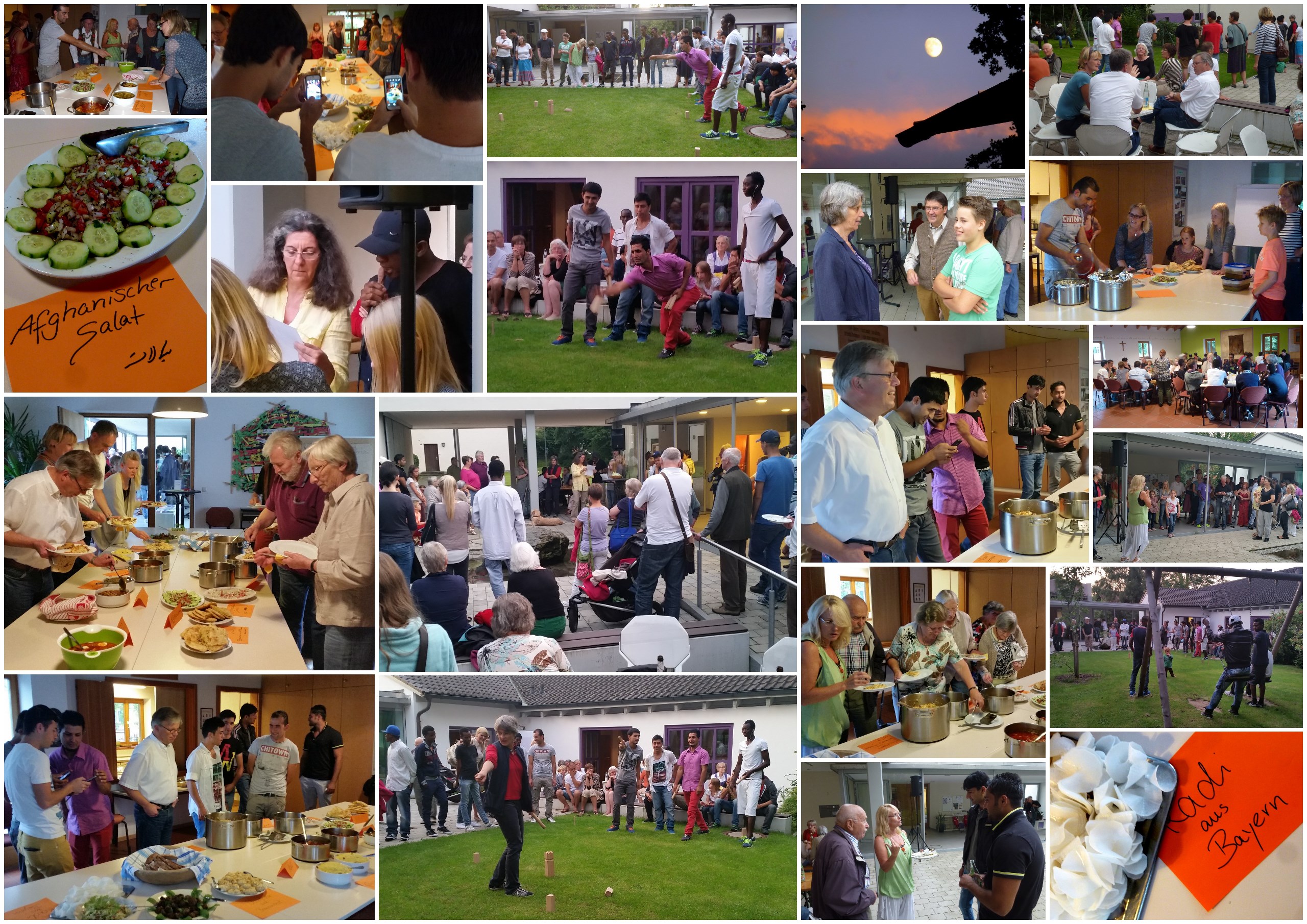 Menschen aus der evangelischen Kirchengemeinde, ehrenamtliche Paten und interessierte Wasserburger feierten gemeinsam mit den hier wohnenden Asylbewerbern ein fröhliches Fest. Das Essen hatten zum größten Teil viele fleißige Köche aus Afghanistan, Pakistan, Mali und Eritrea gekocht – es war köstlich!
