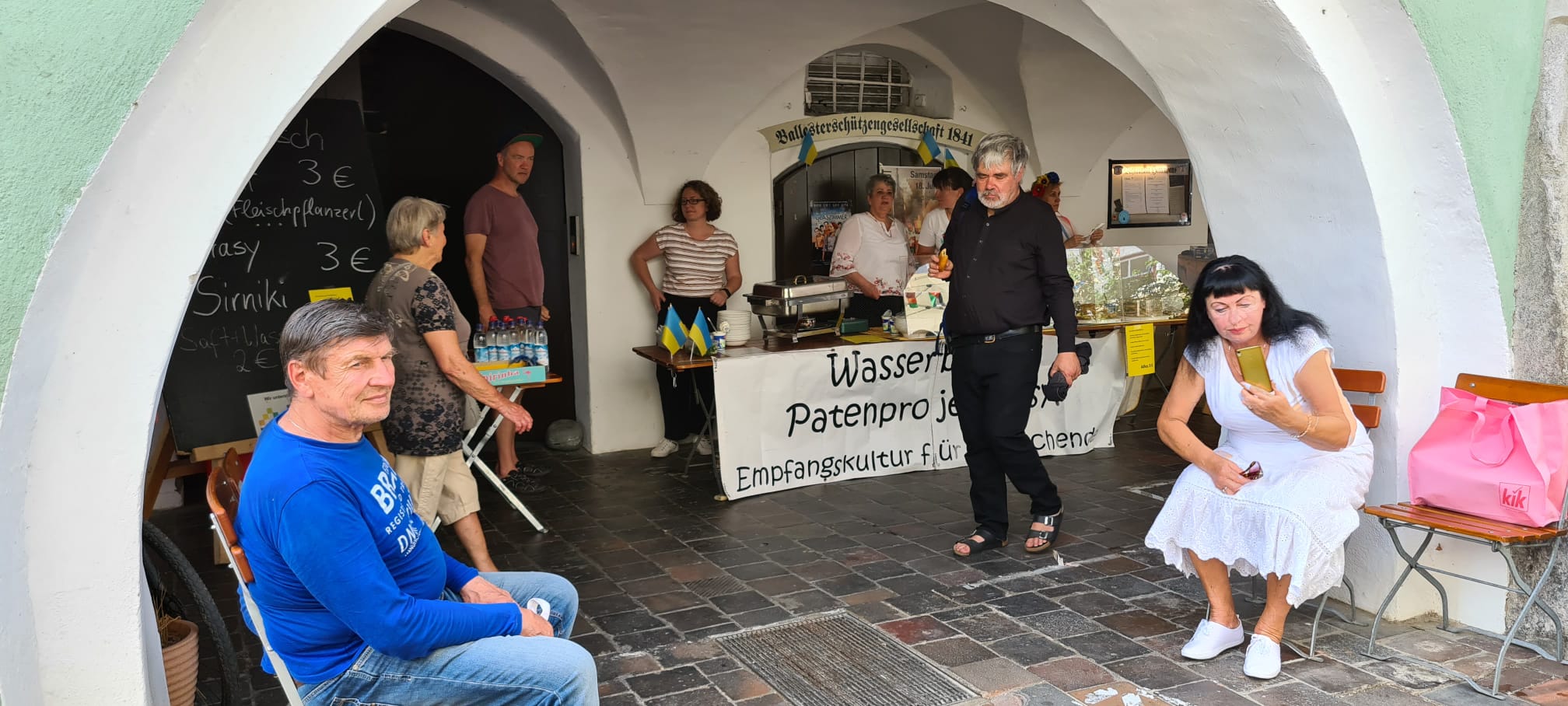 „Unsere ukrainischen Damen haben zwei Tage fleißig im Gemeindehaus gekocht. Deshalb gab es an unserem Stand beim Nationenfest 2022 ukrainische Spezialitäten wie Borschtsch, gefüllte Kartoffeltaschen, eine Art Fleischpflanzerl und Maultaschen mit verschiedenen Füllungen. Damit konnten sie den Wasserburgern zeigen, dass die ukrainische Küche ziemlich lecker ist.“ 🙂